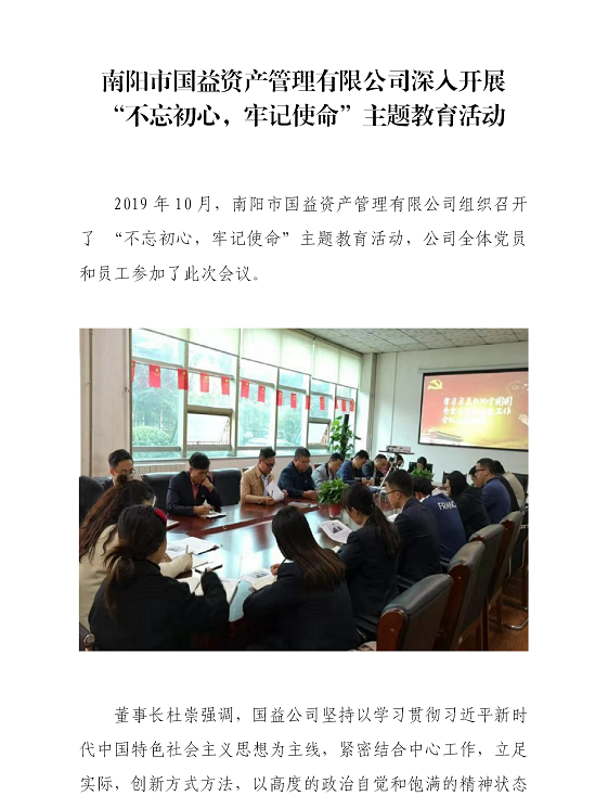 南陽(yáng)市國(guó)益資產(chǎn)管理有限公司深入開(kāi)展 “不忘初心,牢記使命”主題教育活動(dòng)